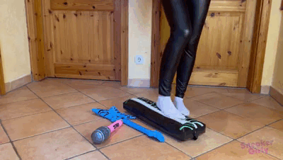 This mistress had been left in charge of her brother and she was told to manage him and make sure that he did all his work for the day but he kept on dodging it. She got frustrated and took his pian inflatable and started stepping it while she mentioned and listed each job that he had been avoiding. She made him know that she meant business and she was serious