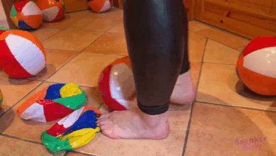 This mistress was mad at her kids because nothing she told them ever worked. She told them today to do their chores, but they ignored her and this made her so mad. She came home to find their beach balls scattered all over, and she almost tripped on them. She was so furious that she did not even take her bag off. She started crushing them there and then. She crushed them until the pressure they had was gone