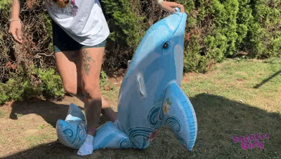 Sneakergirly loves the feeling of an inflatable on her feet, so much so that it is one of her fetishes. This is her favorite toy, and she knows no matter how much she stomps on it with her foot, but it won't break. She fact that she is wearing ankle socks and walking on a toy makes her happy, but she can't crush no matter how much she tries.in the end, it doesn't break